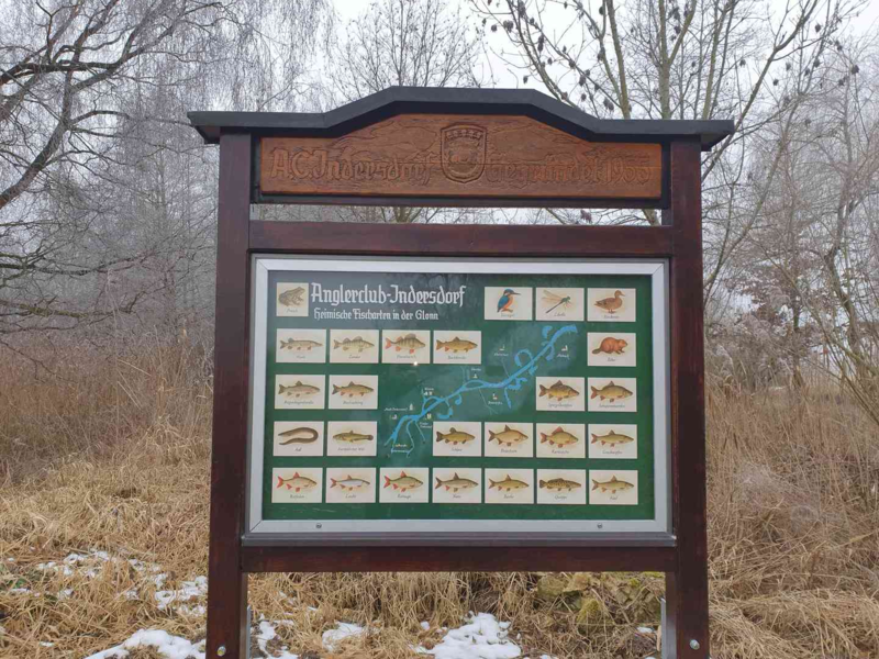 Unsere Fischtafel wurde von Vereinsmitgliedern vor vielen Jahren gebaut und liebevoll bemalt. Sie stand bis zum Frühjahr 2025 an der Glonn bei Indersdorf, direkt am Spazierweg neben der Kläranlage. Aufgrund der Erweiterung der Indersdorfer Kläranlage musste die Tafel versetzt werden.